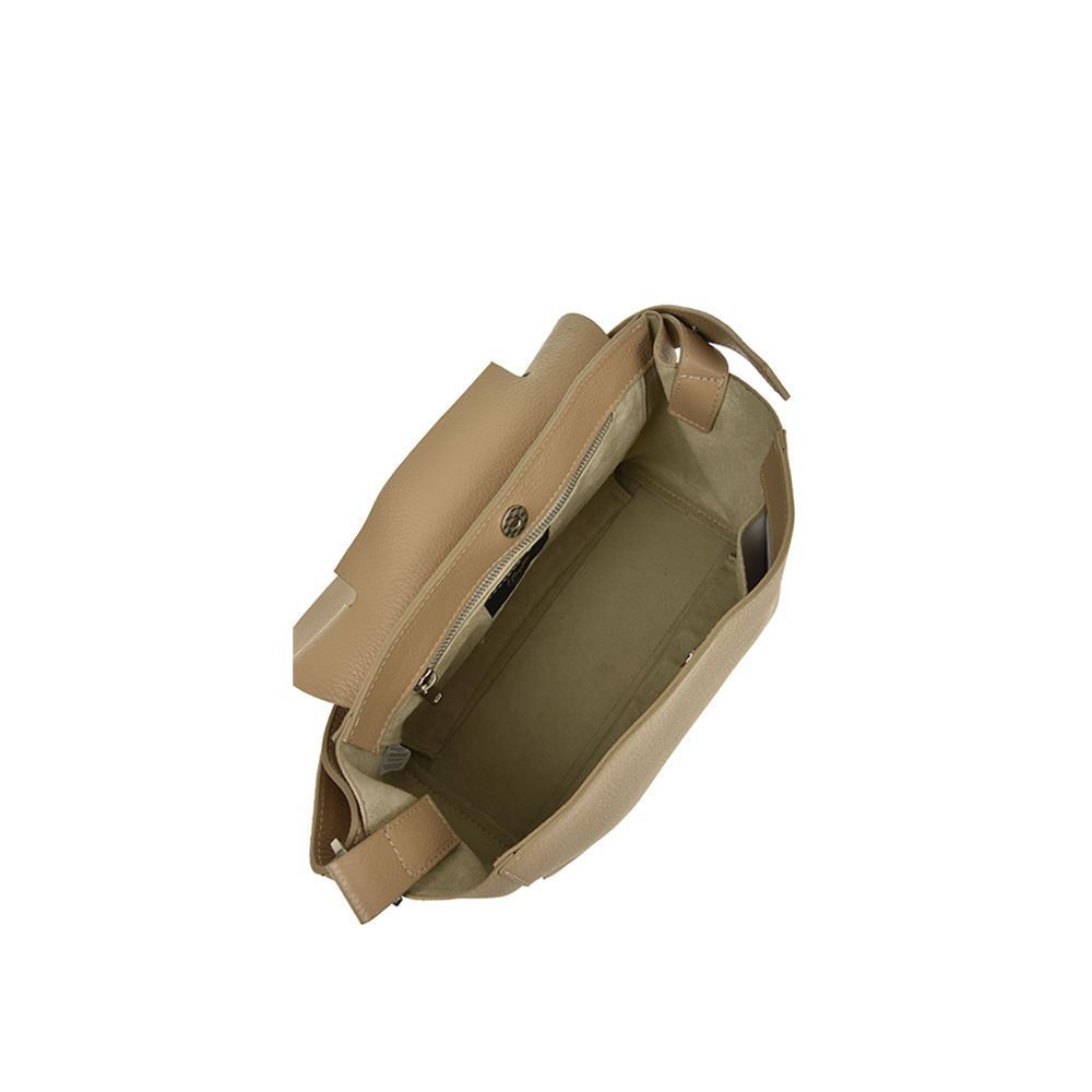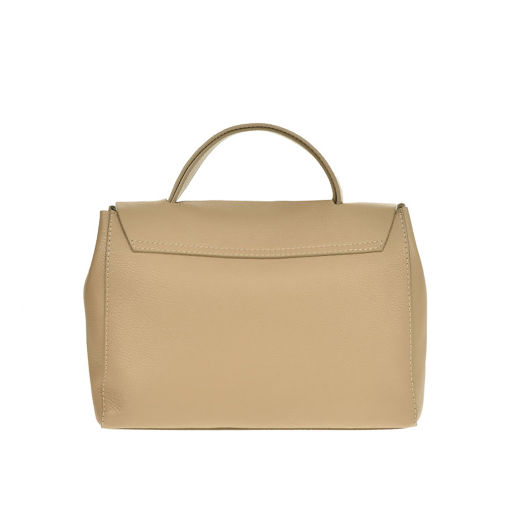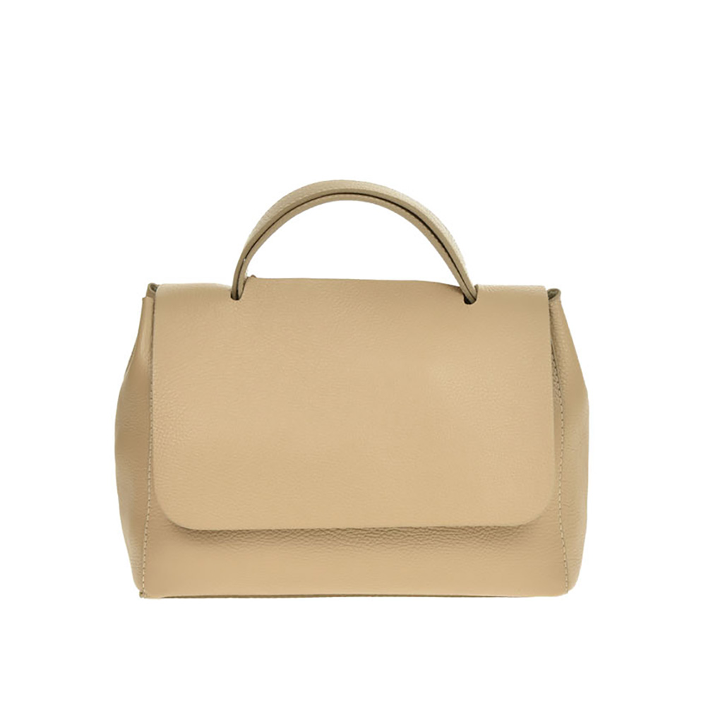 Outer: 100% LeatherOne top handle Top flap over with magnetic button closureOne zip interior pocketNon-adjustable shoulder strap
