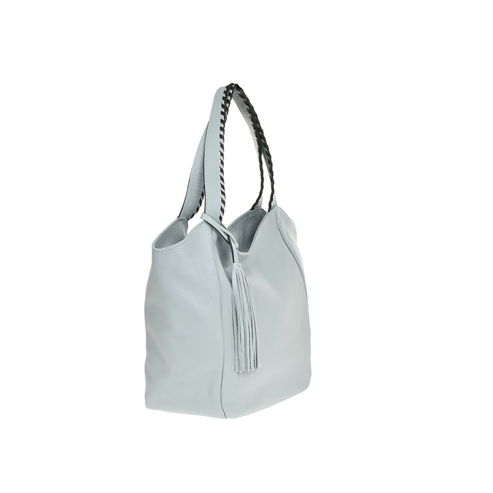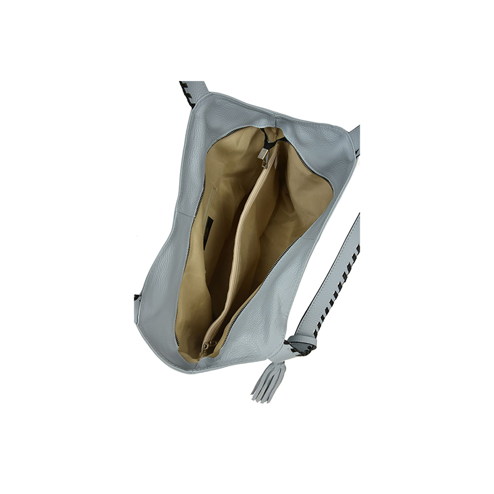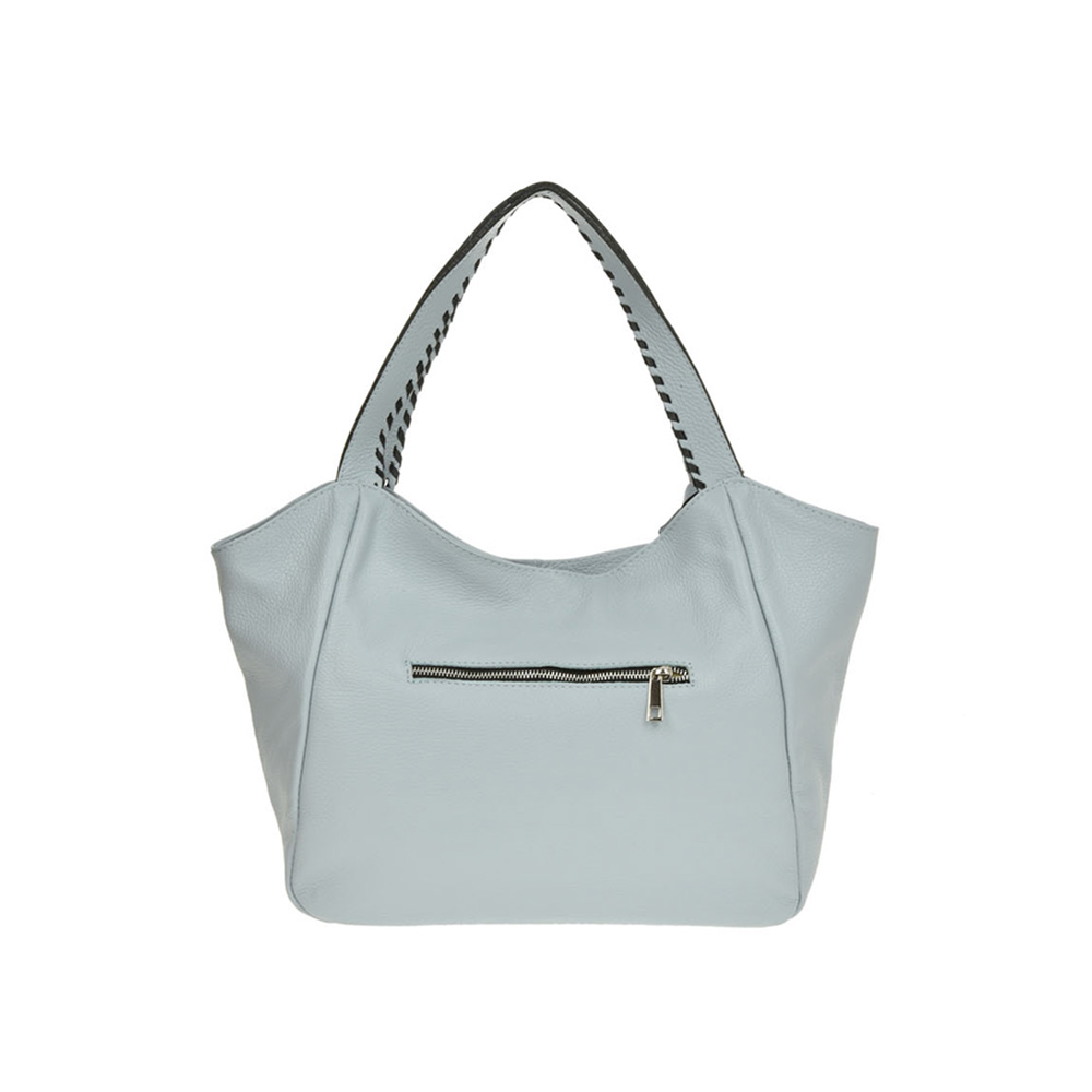 Outer: 100% LeatherTwo top handles Top zip closureOne zip exterior pocketTwo zip interior pocketsOne slip interior pocketNon-adjustable shoulder strap
