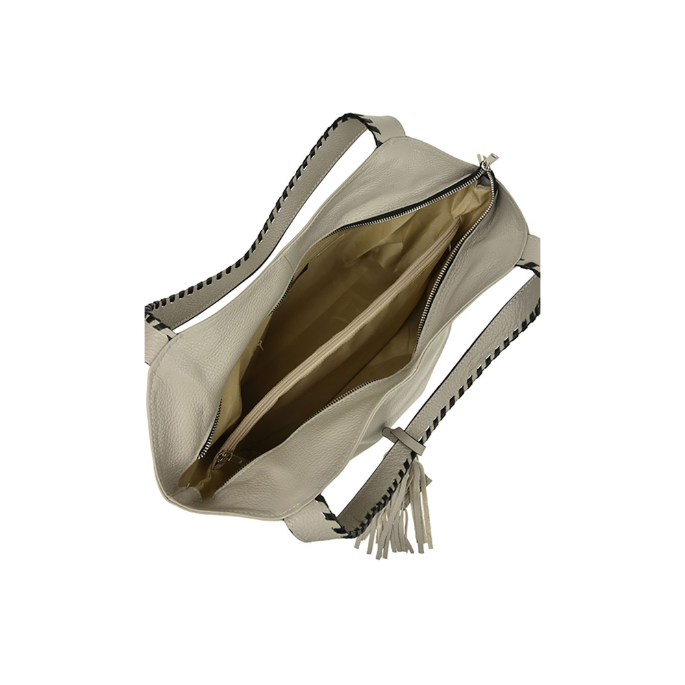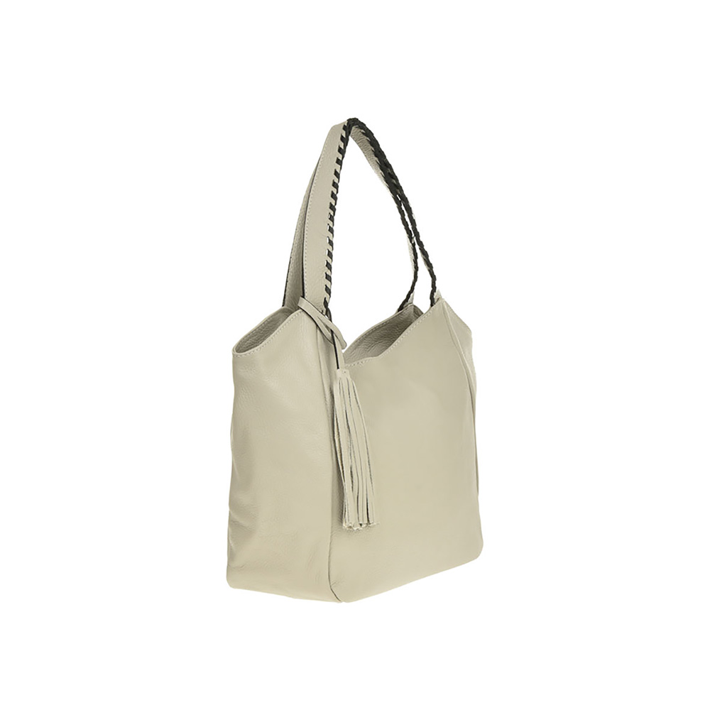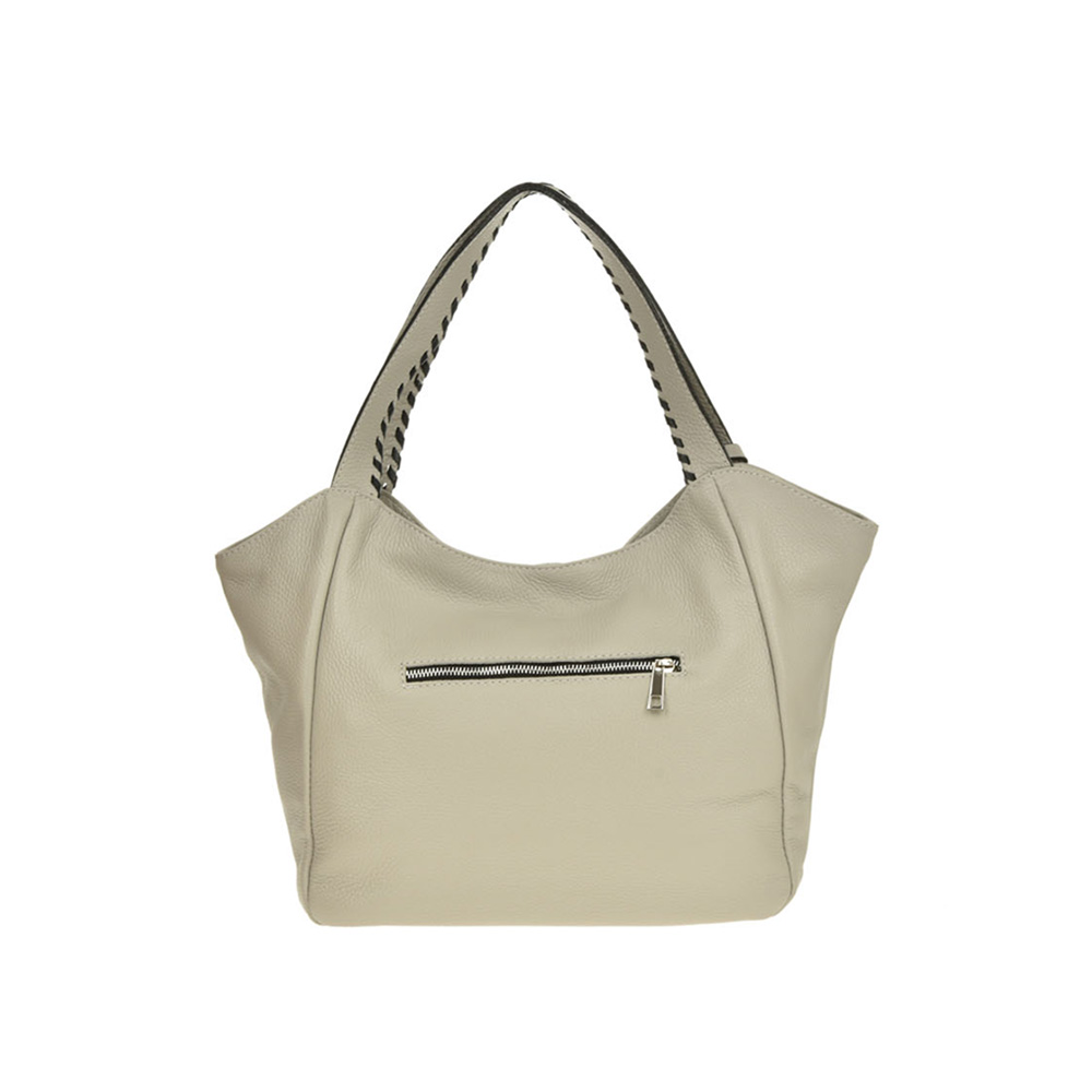 Outer: 100% LeatherTwo top handles Top zip closureOne zip exterior pocketTwo zip interior pocketsOne slip interior pocketNon-adjustable shoulder strap