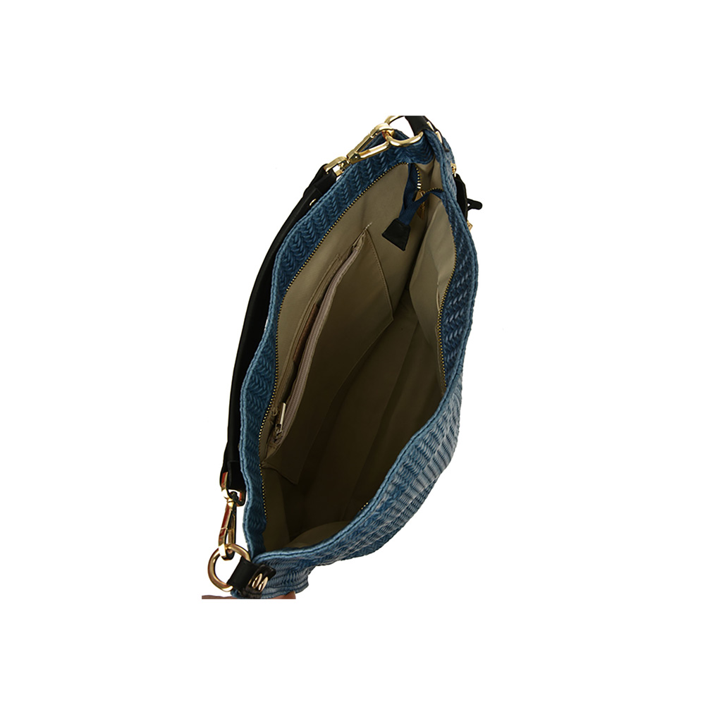 Outer: 100% LeatherOne top handle Top zip closureOne zip exterior pocketOne zip interior pocketTwo slip interior pocketsAdjustable shoulder strap. length 122