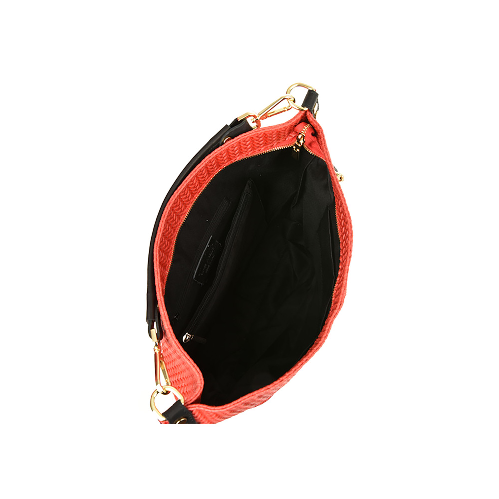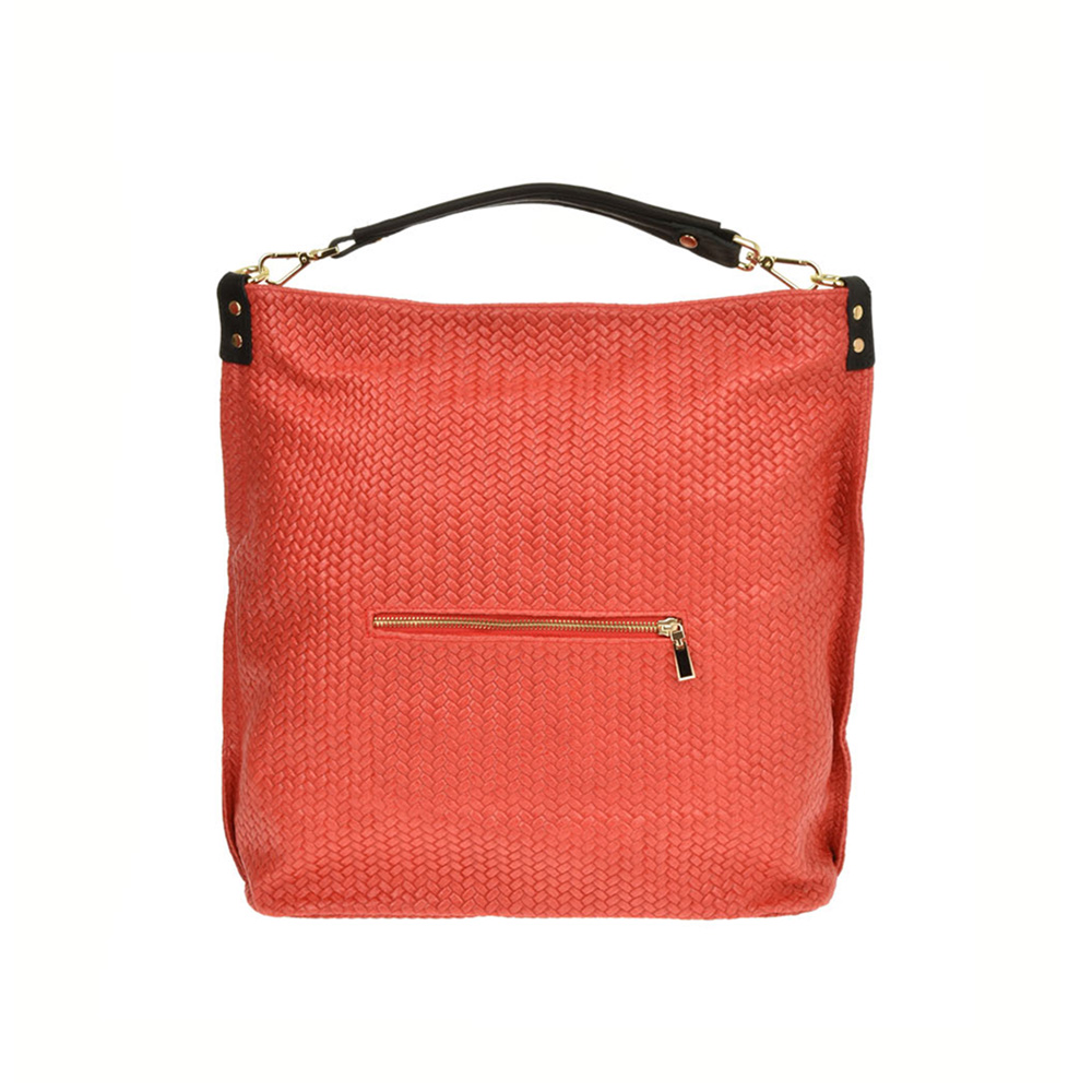 Outer: 100% LeatherOne top handle Top zip closureOne zip exterior pocketOne zip interior pocketTwo slip interior pocketsAdjustable shoulder strap. length 122