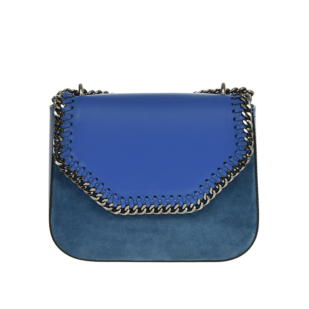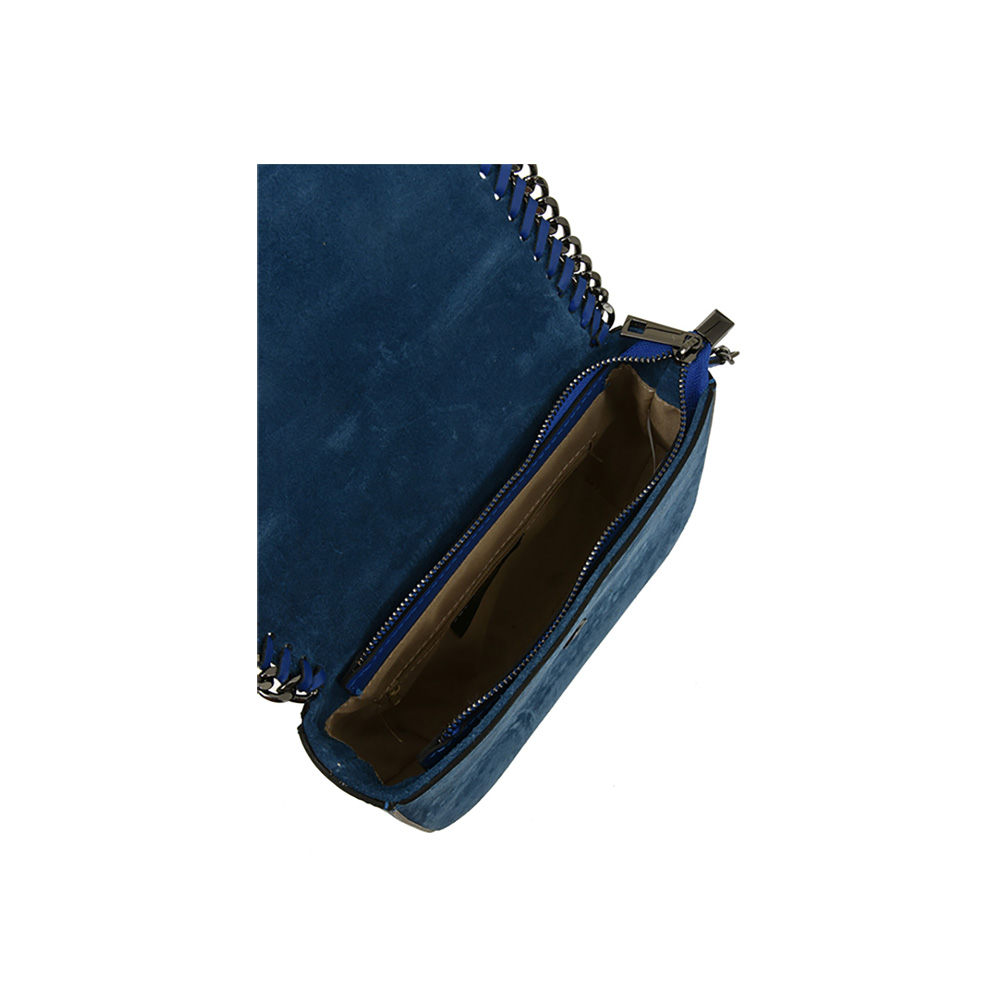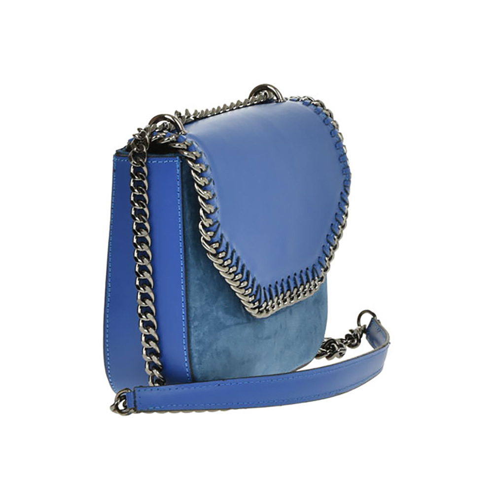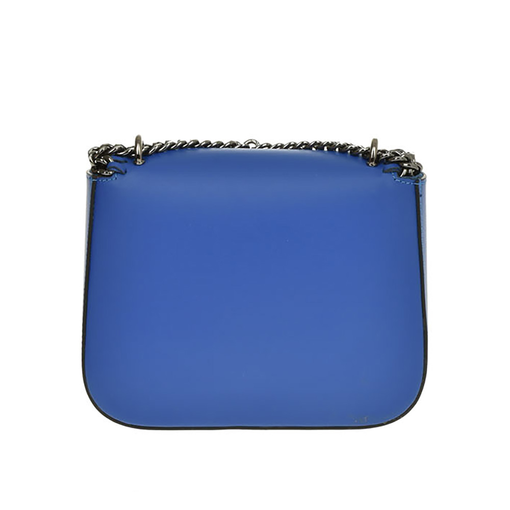 Outer: 100% LeatherTop flap over with magnetic button and zip closureOne zip interior pocketShoulder strap with chain and leather, length 144