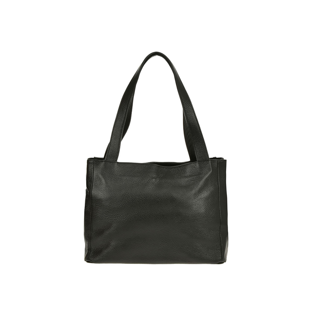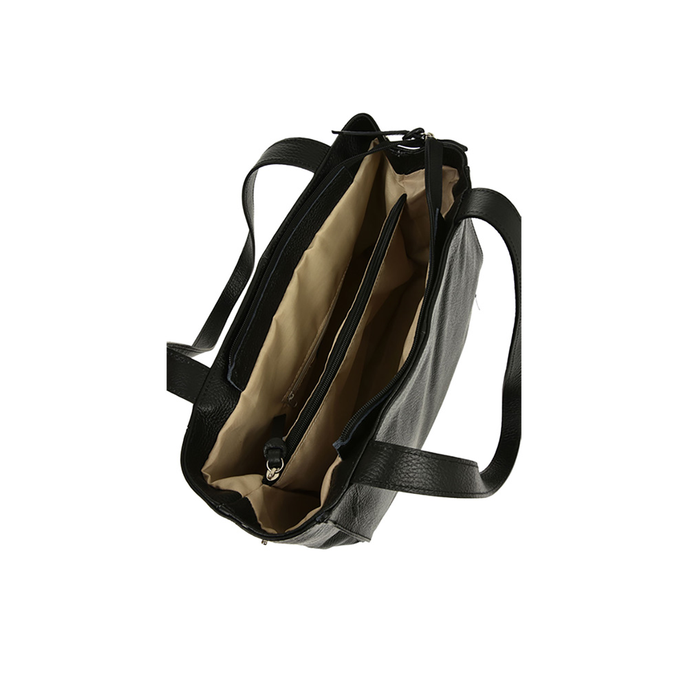 Outer: 100% LeatherTwo top handle strapsTop zip closureTwo zip exterior pocketsTwo zip interior pocketsTwo slip interior pocketsNo adjustable shoulder strap