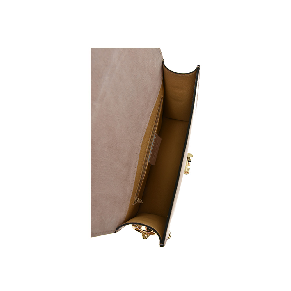 Outer: 100% LeatherOne interior pocket with zipMagnetic closureMetalic shoulder chain (length aprox. 128cm)