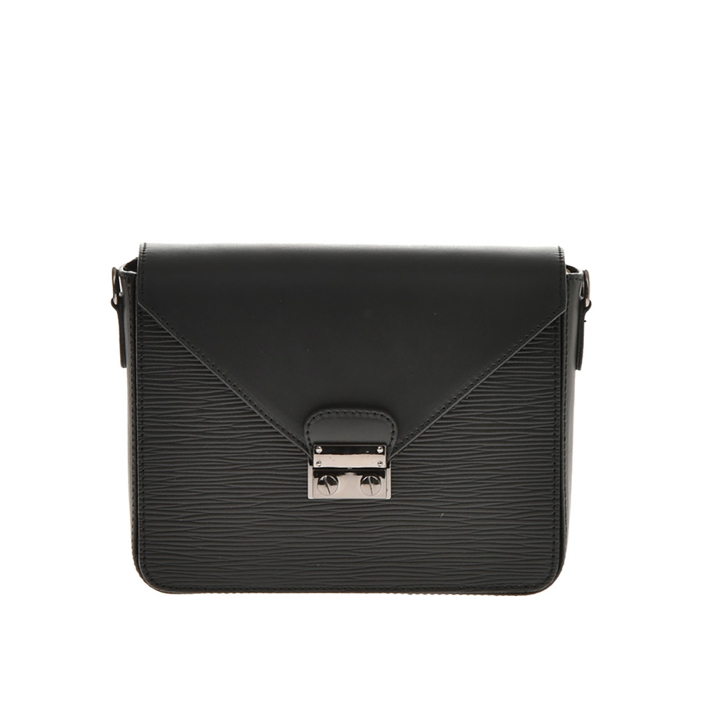 Outer: 100% LeatherAdjustable shoulders straps. Length 118 cmFlap over with metalic closureOne zip interior pocket