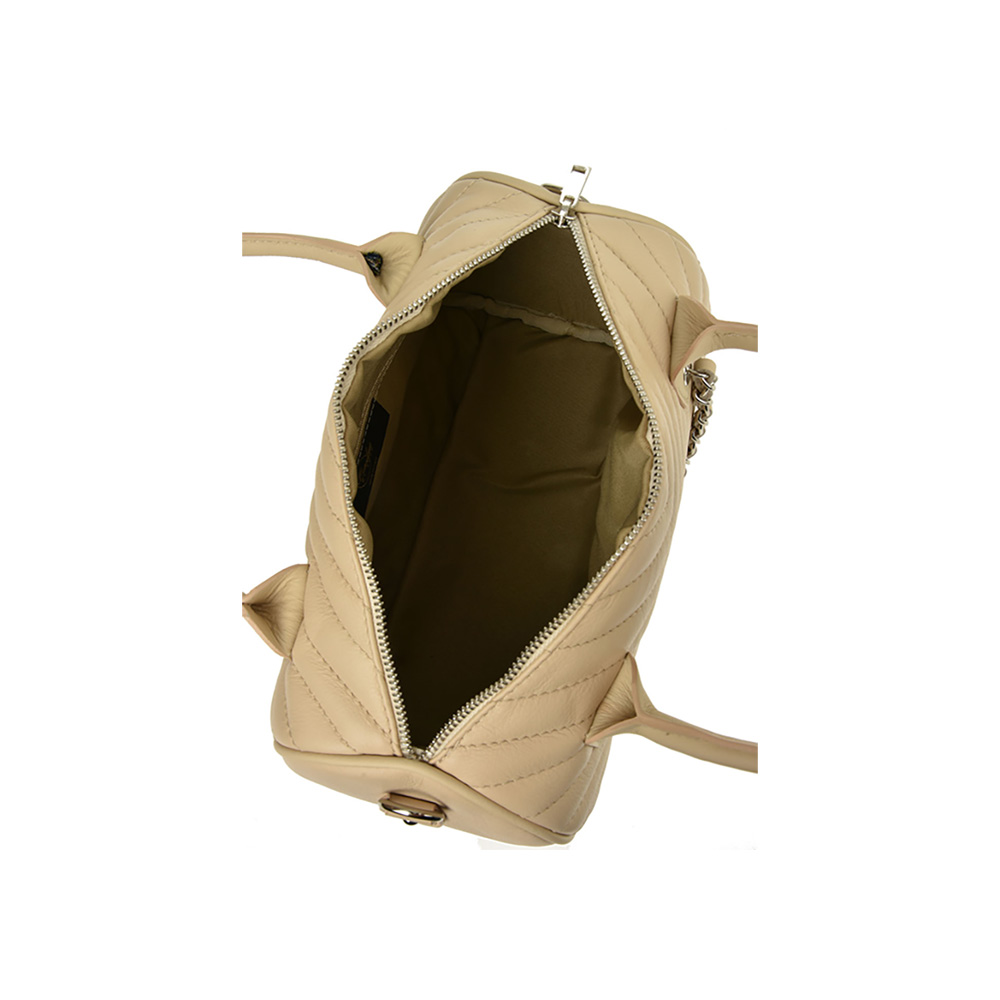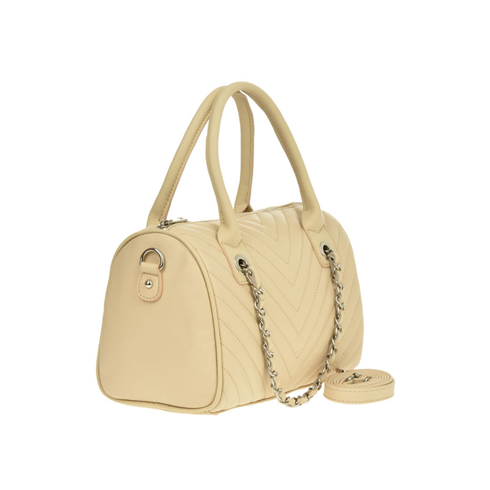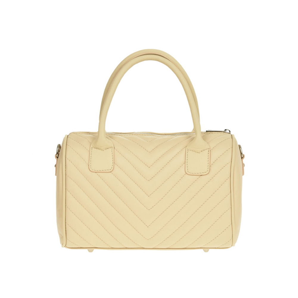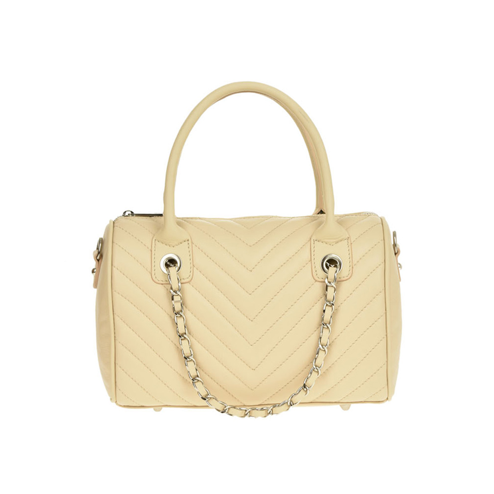 Outer: 100% LeatherTwo top handle Top zip closureOne zip interior pocketOne slip interior pocketAdjustable shoulder strap, length 122