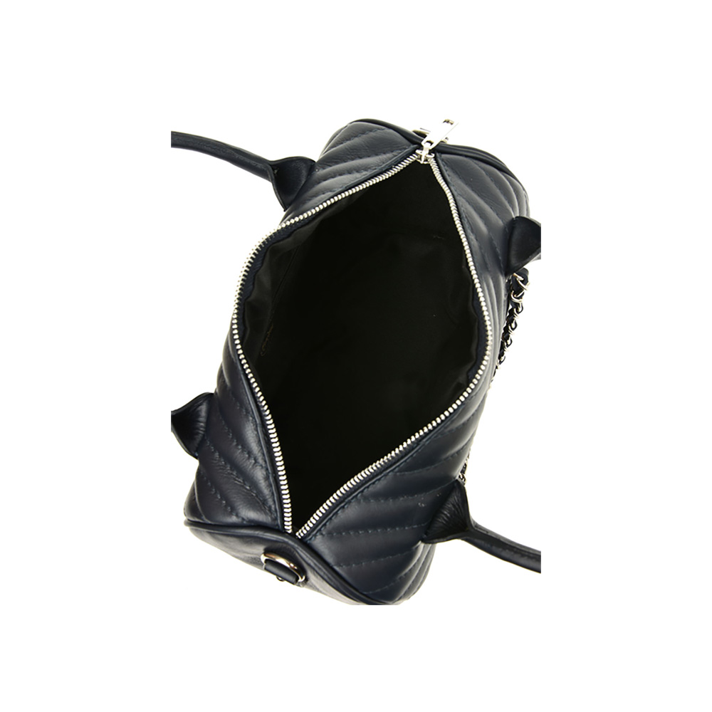 Outer: 100% LeatherTwo top handle Top zip closureOne zip interior pocketOne slip interior pocketAdjustable shoulder strap, length 122