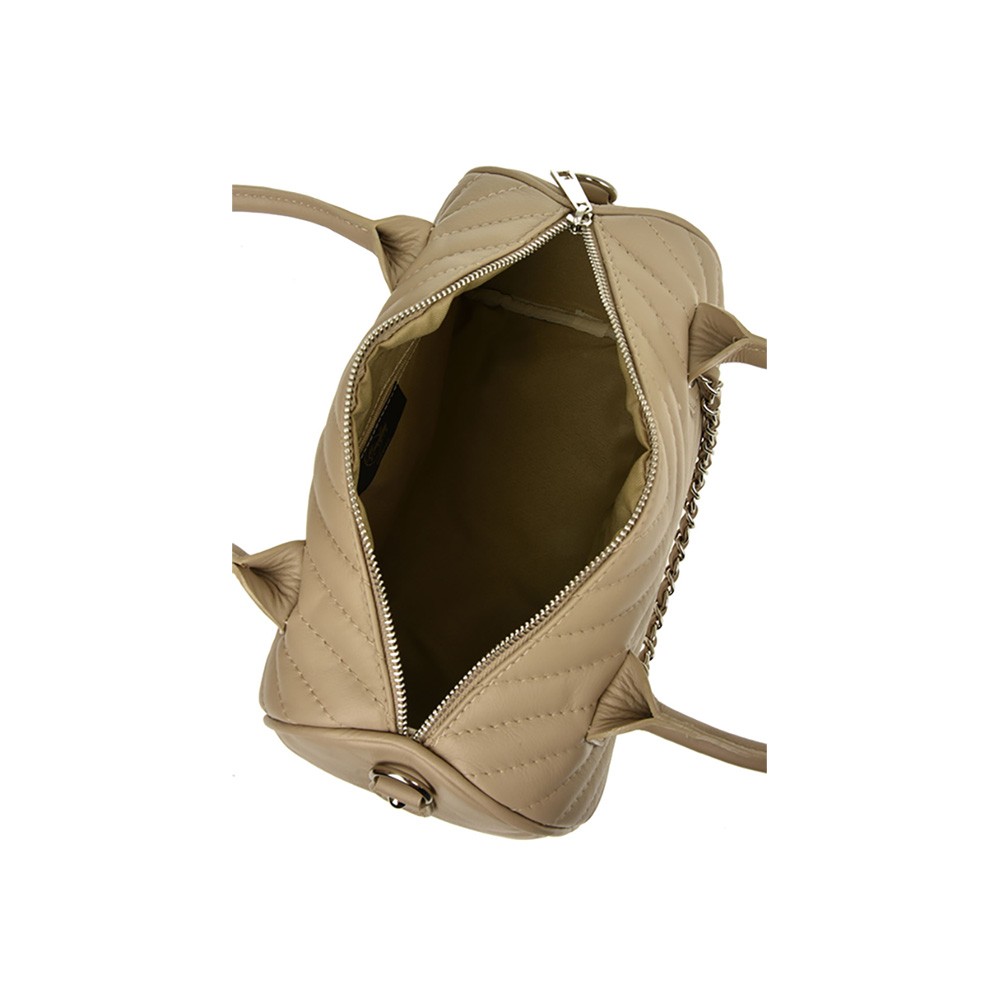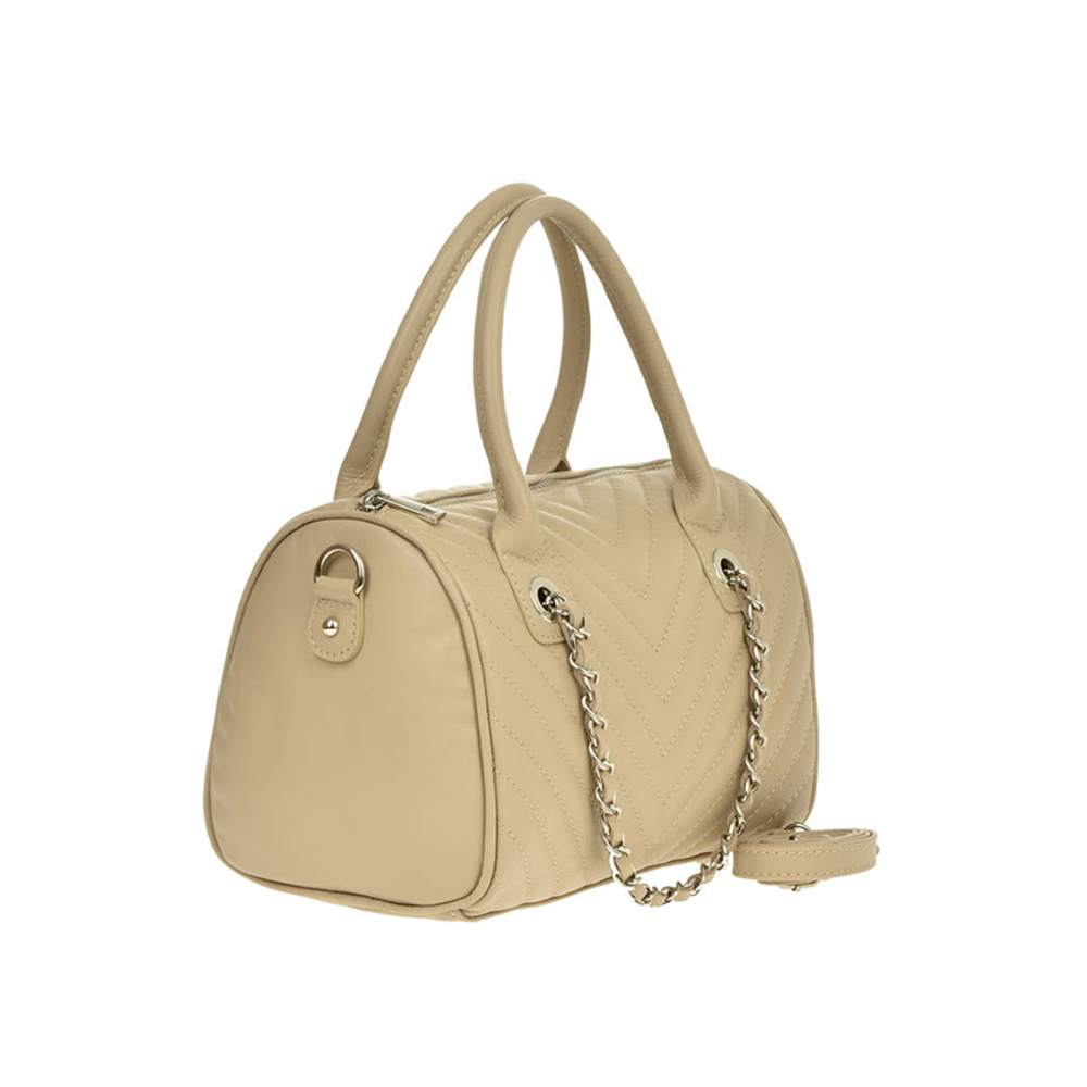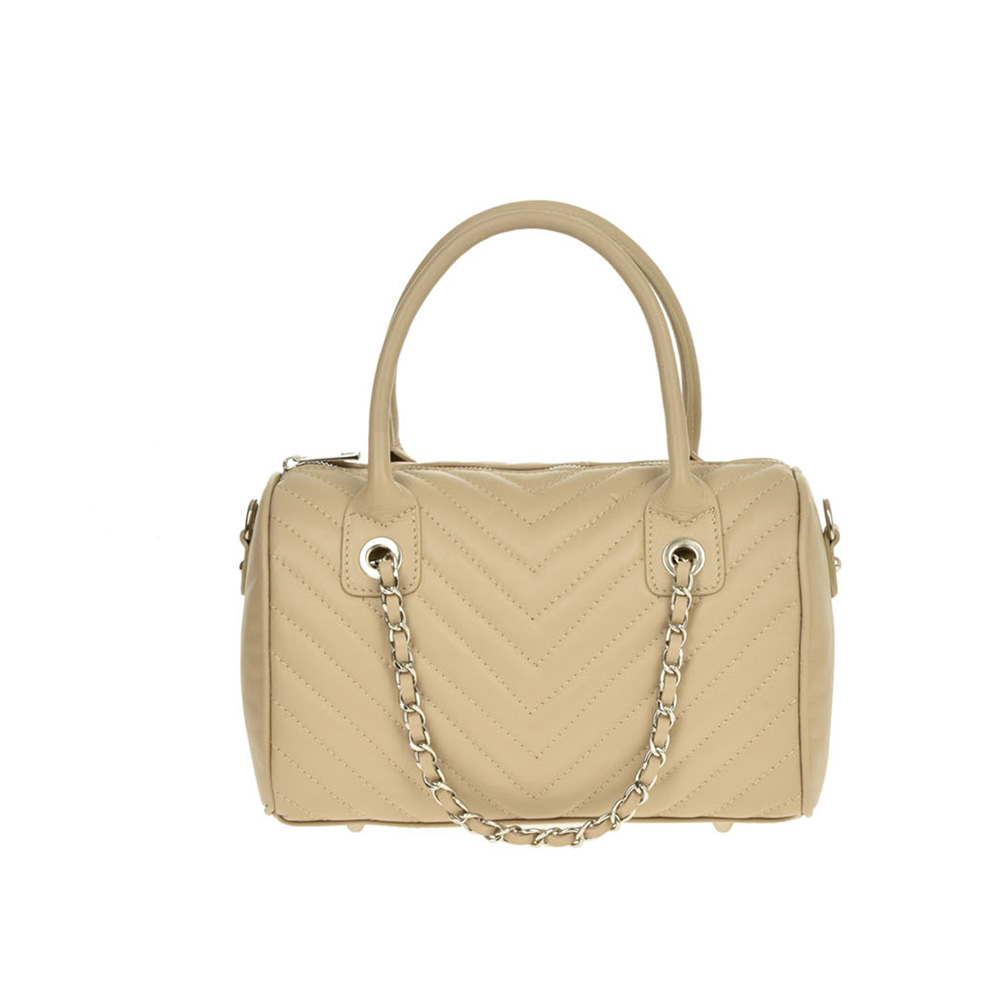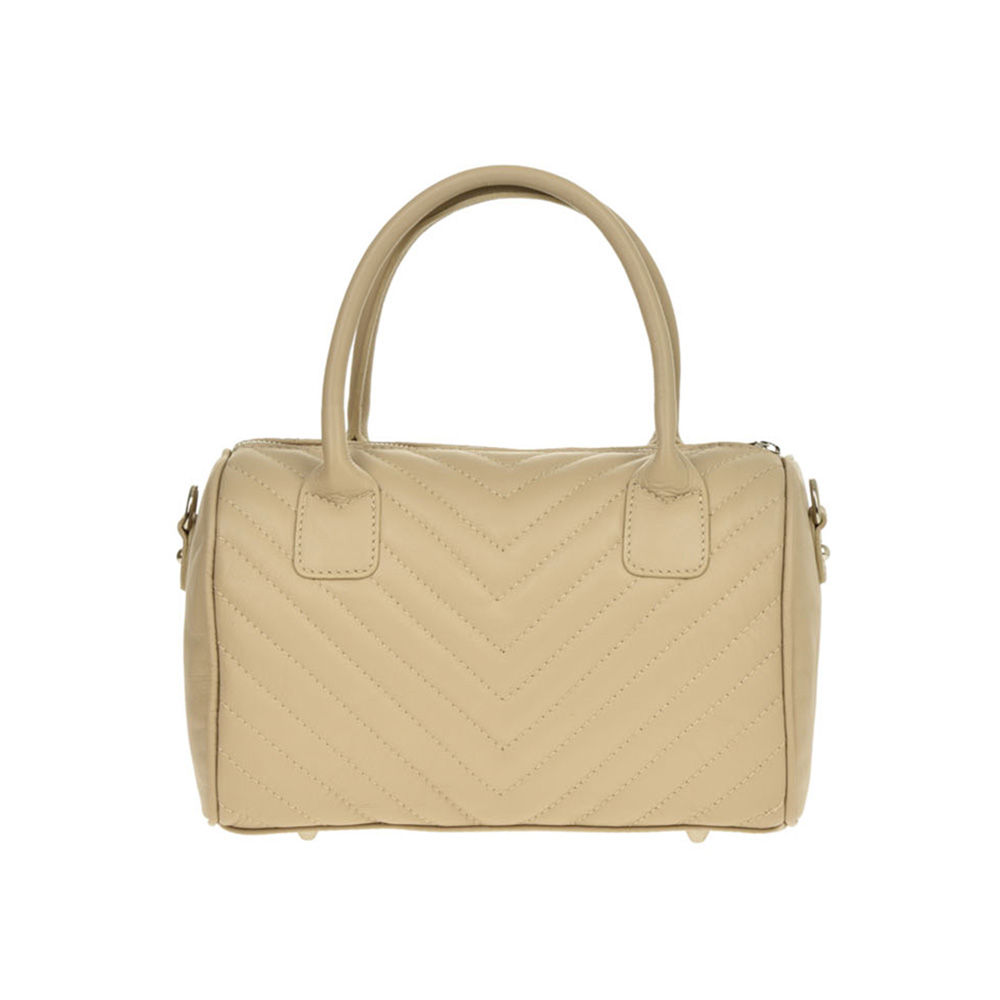 Outer: 100% LeatherTwo top handle Top zip closureOne zip interior pocketOne slip interior pocketAdjustable shoulder strap, length 122