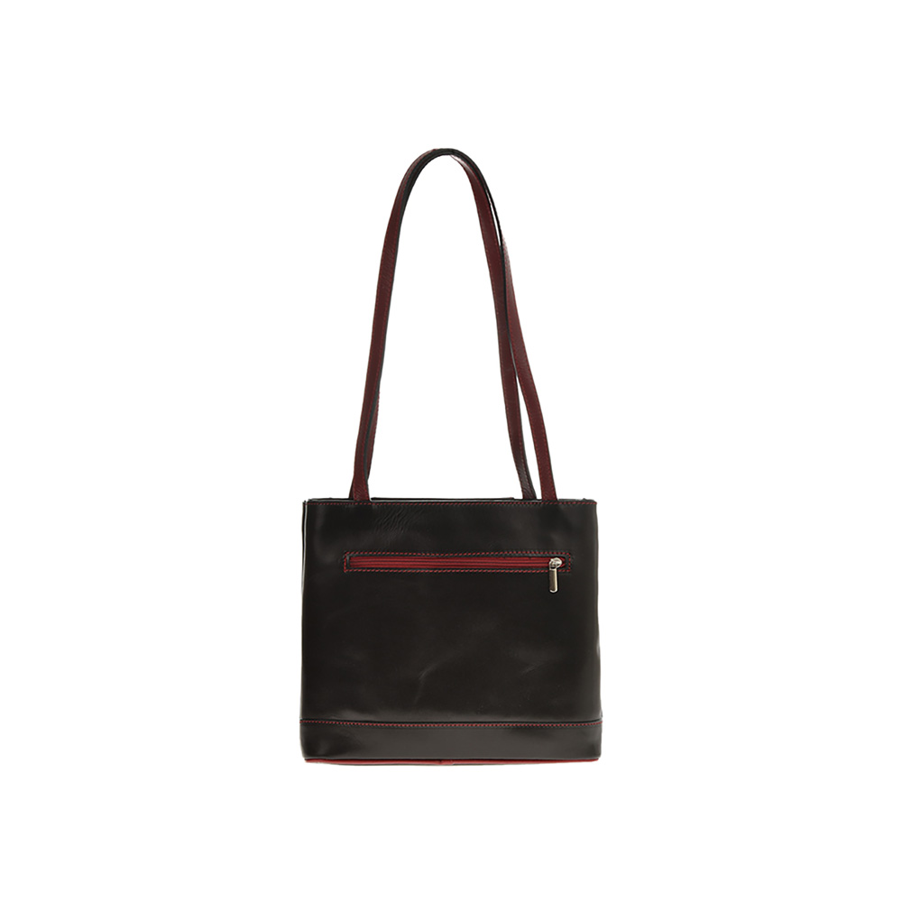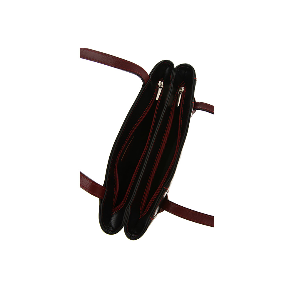 Outer: 100% Leather Two top handlesTop zip closure One zip exterior pocketTwo compartmentsOne zip interior pocket