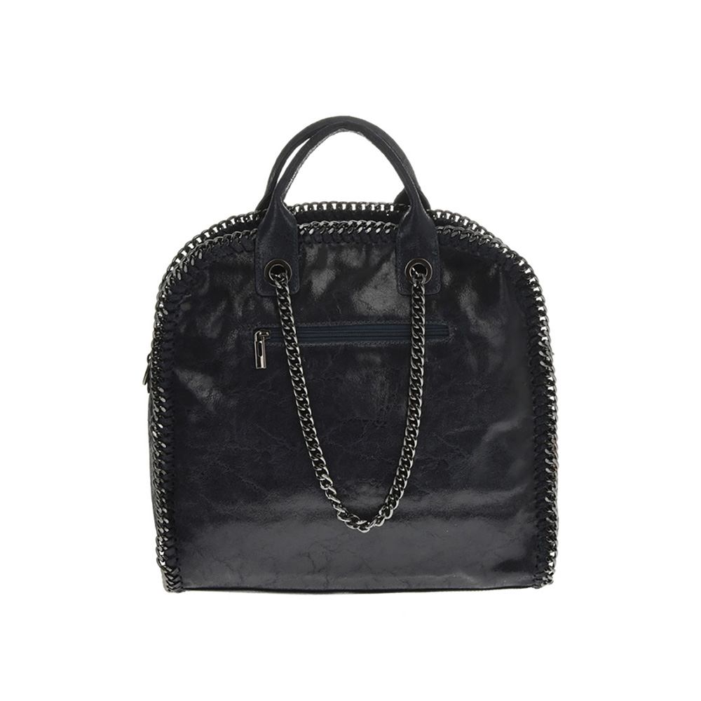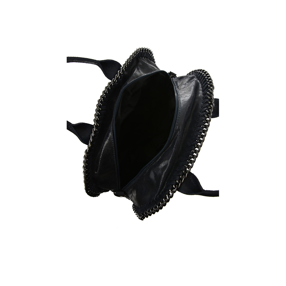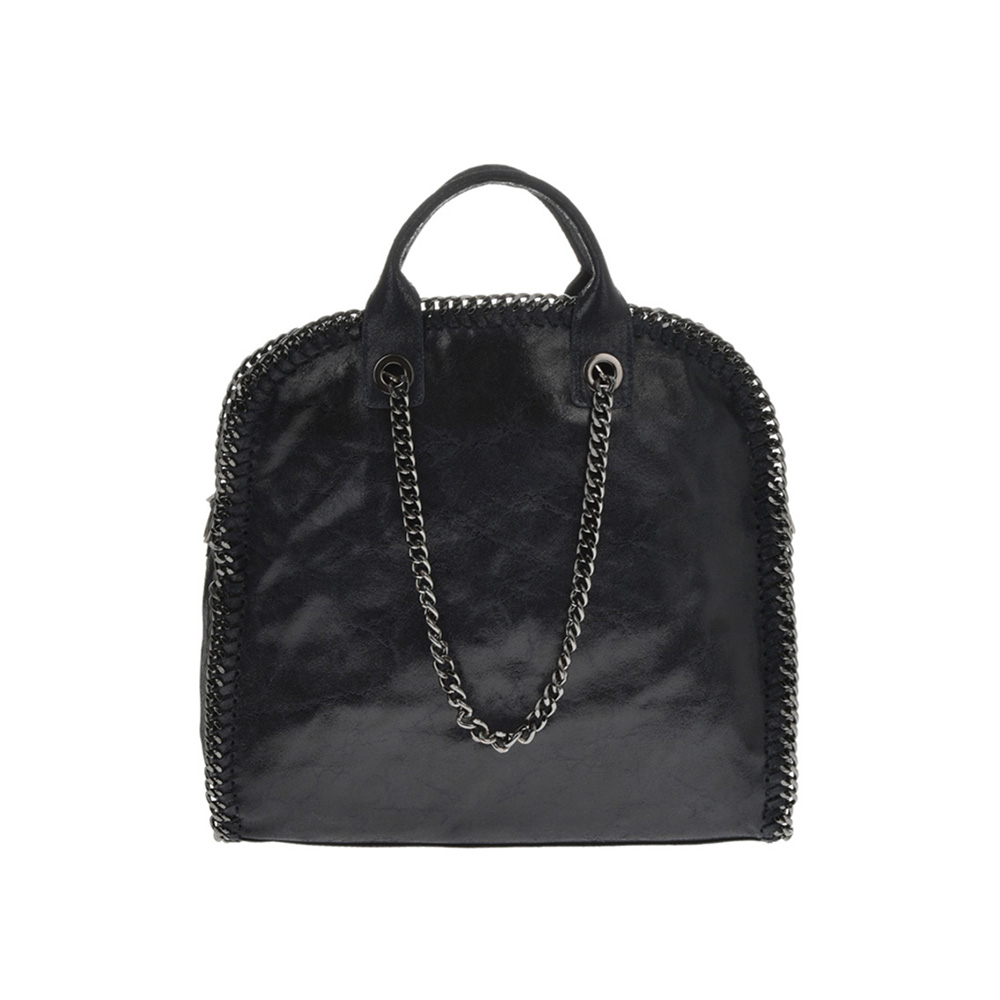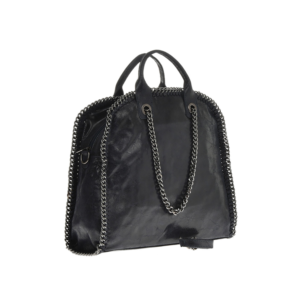 Outer: 100% Leather Two top leather handles and two chain handlesTop zip closure One zip exterior pocketOne zip interior pocketTwo slip interior pocketsNo adjustable shoulder strap. Maximum length 120