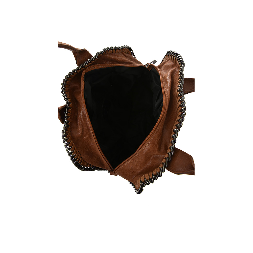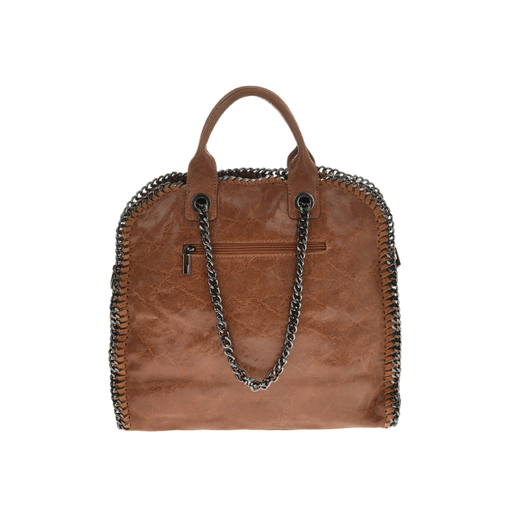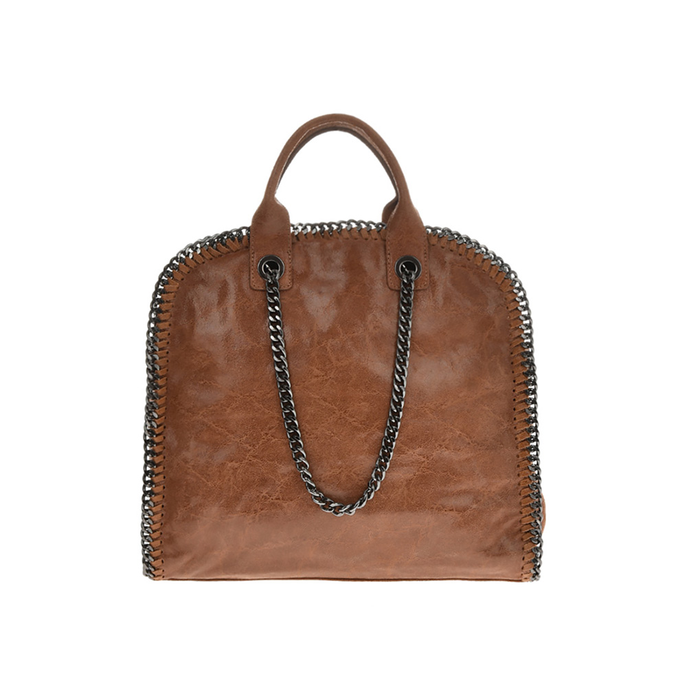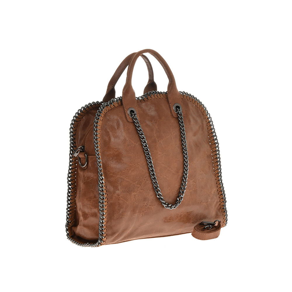 Outer: 100% Leather Two top leather handles and two chain handlesTop zip closure One zip exterior pocketOne zip interior pocketTwo slip interior pocketsNo adjustable shoulder strap. Maximum length 120