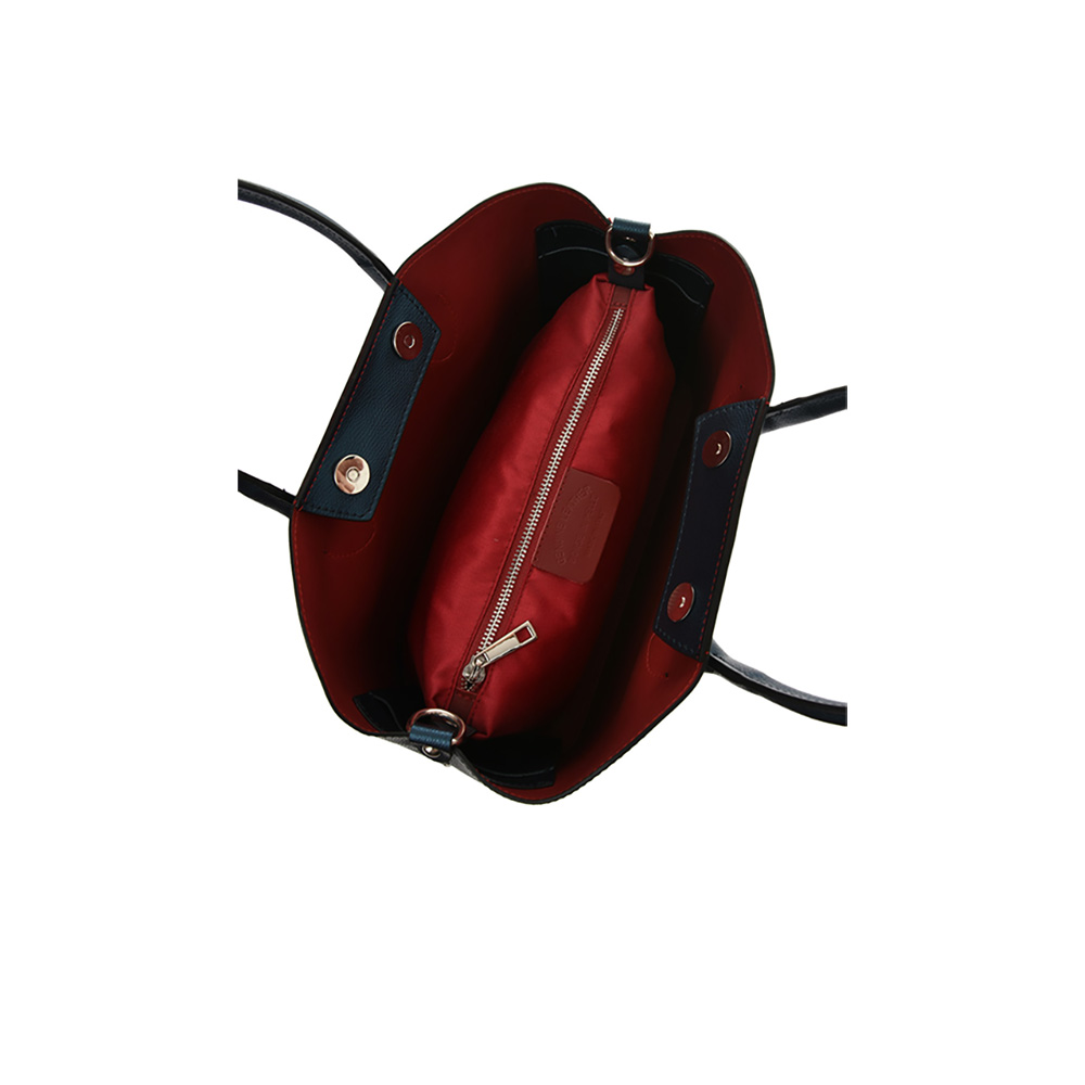 Outer: 100% Leather Top zip closure Two top handlesOne detachable wallet with zip closureNo adjustable shoulder strap. Length 102 cm