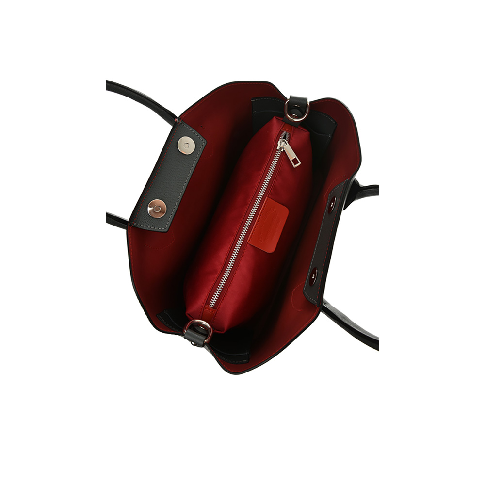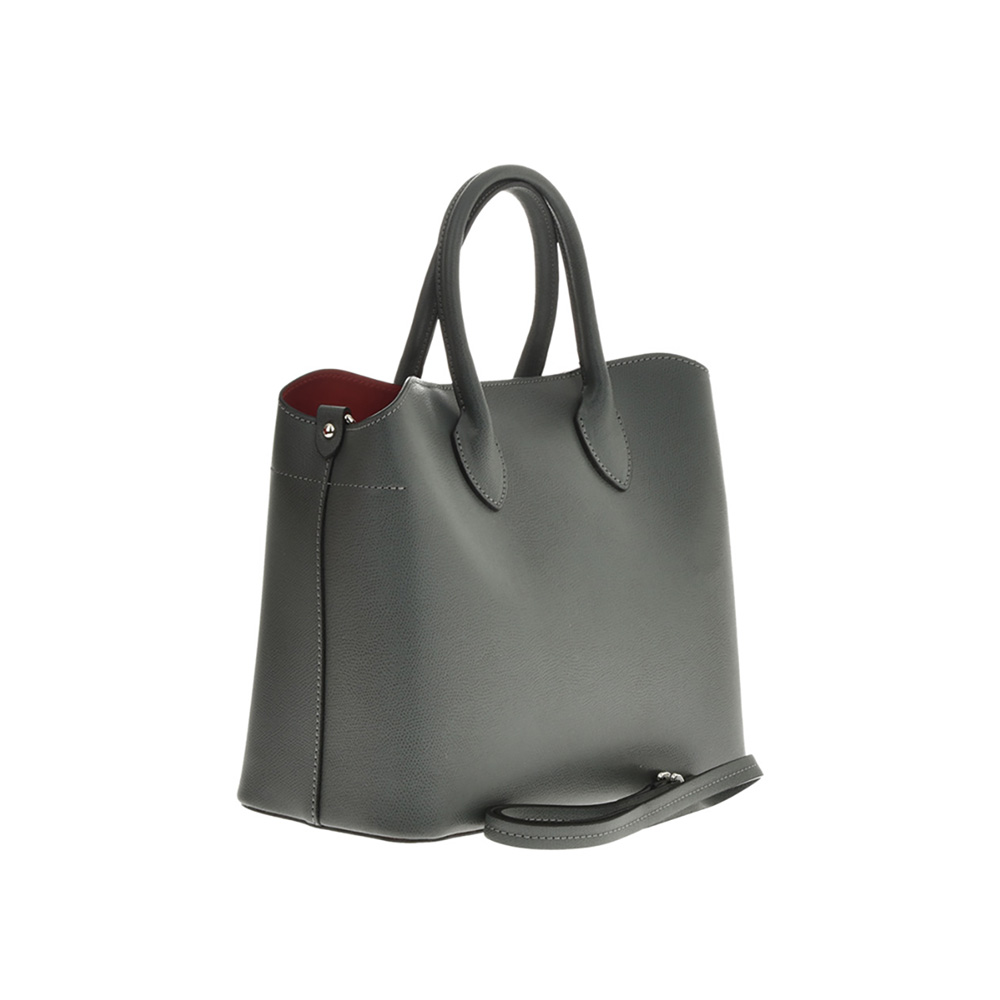 Outer: 100% Leather Top zip closure Two top handlesOne detachable wallet with zip closureNo adjustable shoulder strap. Length 102 cm