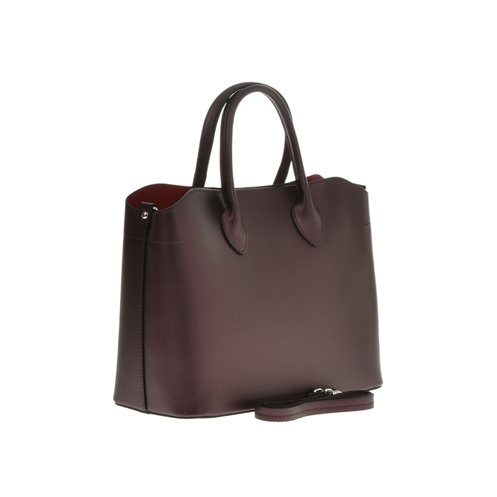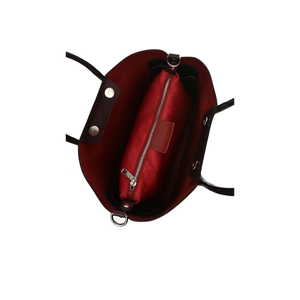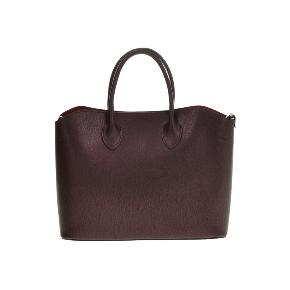 Outer: 100% Leather Top zip closure Two top handlesOne detachable wallet with zip closureNo adjustable shoulder strap. Length 102 cm